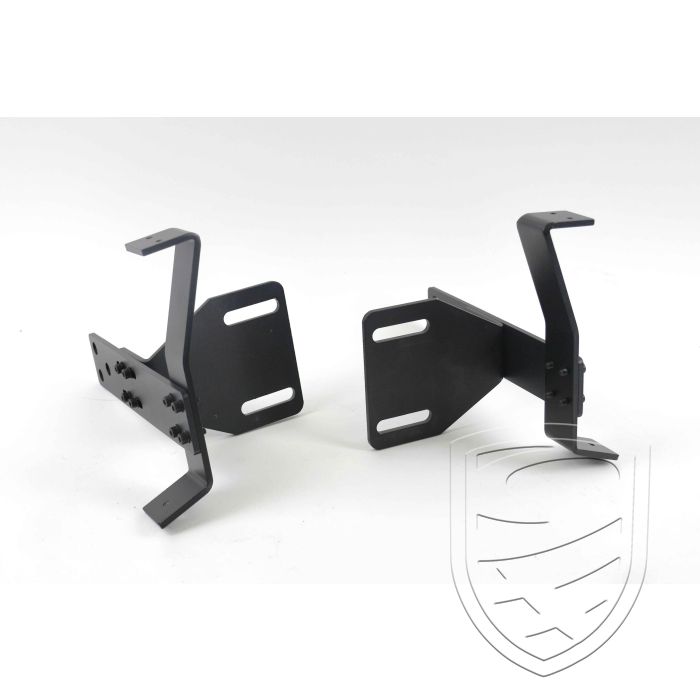 The end of the holder, which is fitted to the corners of the bumpers, is provided with three oversized holes so that the individual corners can also be aligned. The corresponding aluminum mounting brackets with screws are supplied loose so that they can be glued into the bumper corners during installation/alignment.